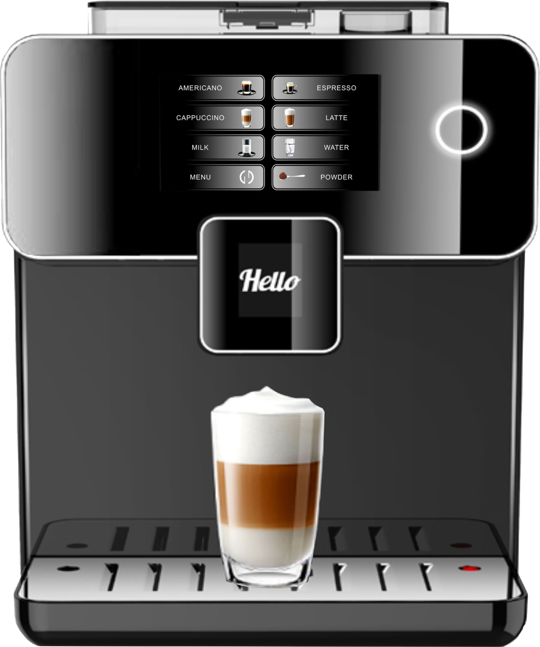 The combination of perfect streamlined design and superb technology, with amazing TFT high definition LCD display and capacitive touch screen, the fully automatic coffee machine using high speed MCU processor can meet all kinds of hot beverage needs, bringing you pure sense experience. Let you enjoy the rich and mellow coffee time.